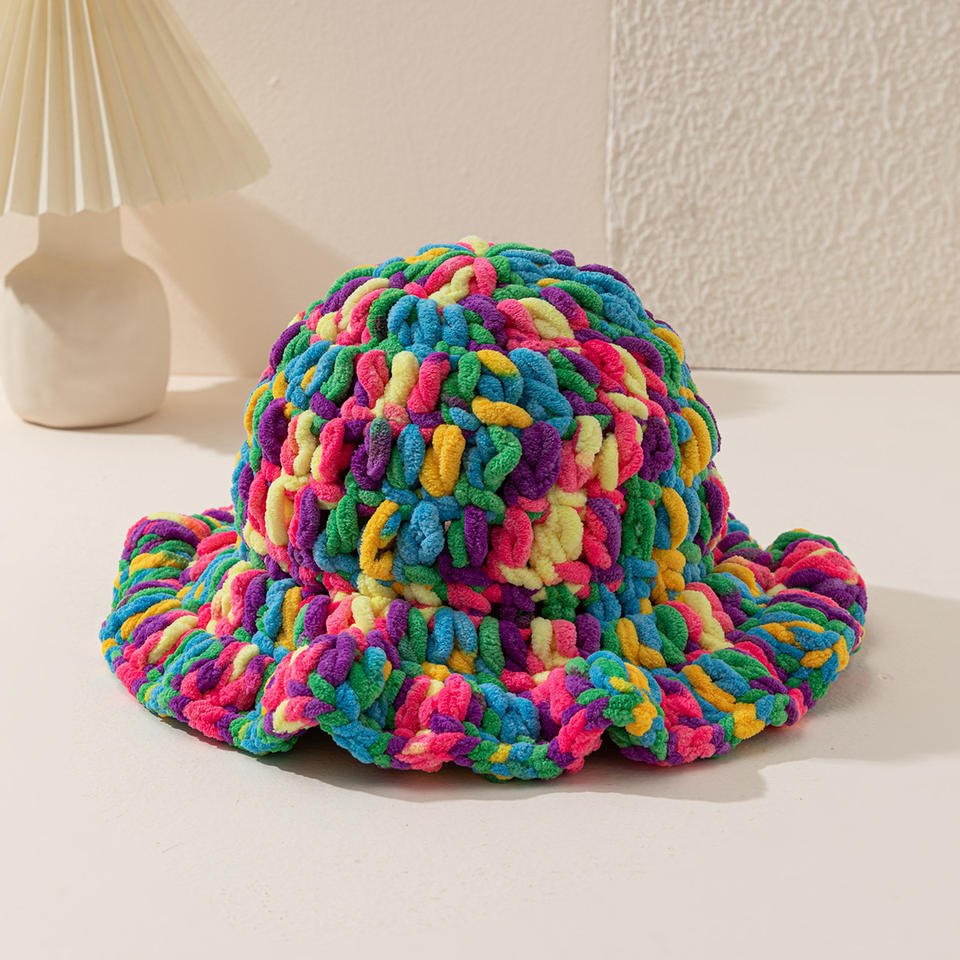 Gorro de Punto Grueso Hecho a Mano, Colorido, con Borde Volante, Estilo Y2K, para Invierno