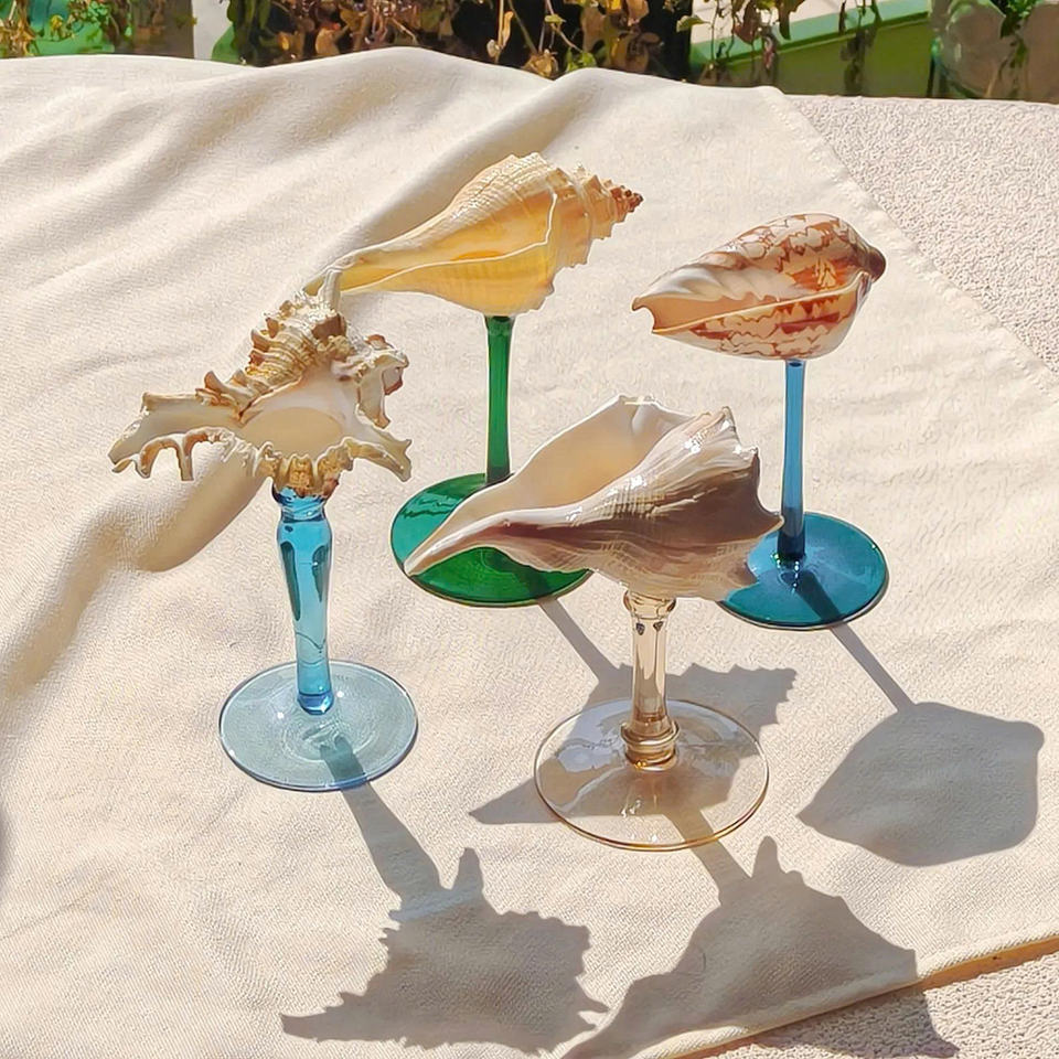 Copa de vino hecha a mano con concha marina, vajilla navideña costera, copa de vino con forma de concha, copa para boda en la playa, regalo para ella y decoración.