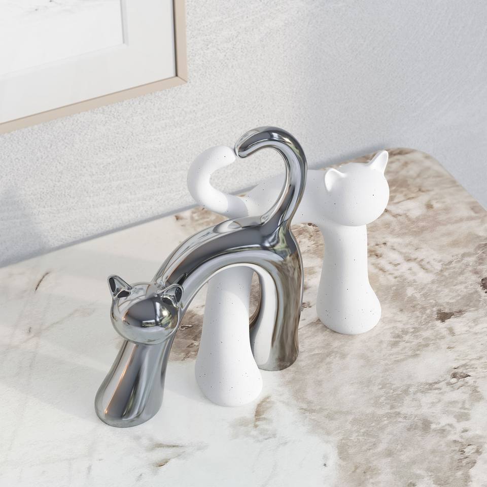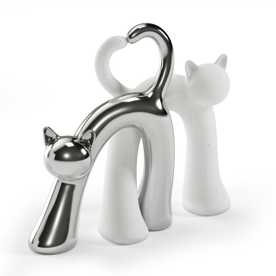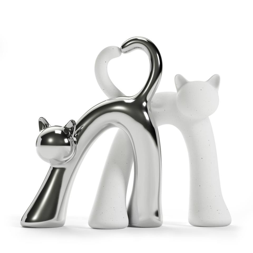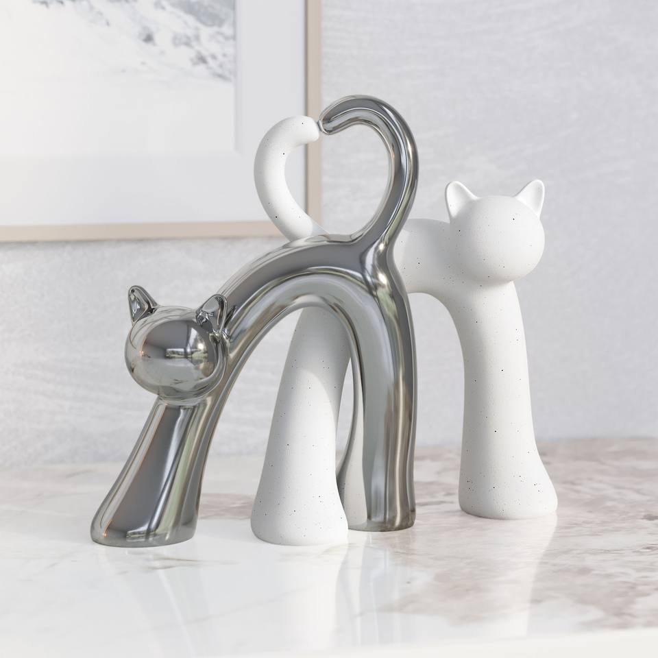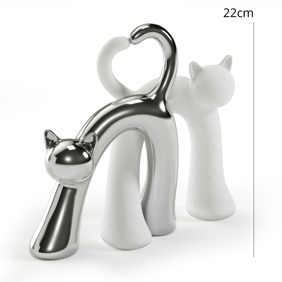 Objeto Decorativo de Cerámica Contemporáneo Hecho a Mano con Patrón de Animales, con Gatos como Tema, 25 cm, Blanco Plateado, para el Día de San Valentín