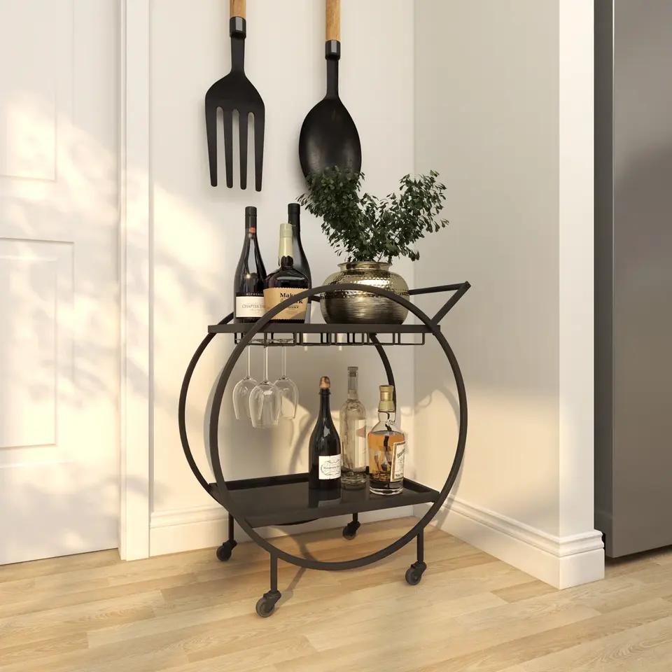 Carrito de Servicio Contemporáneo Hecho a Mano de Plástico Ecológico para Decoración del Hogar y Salones de Banquetes, Chapado en Oro Premium, Seguro