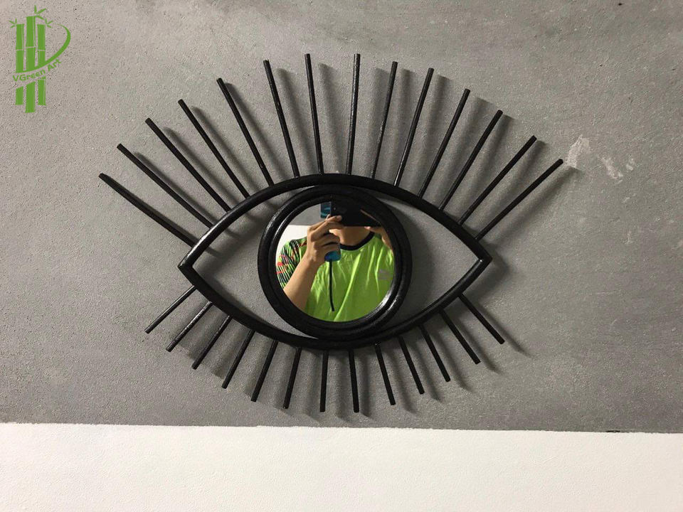 Espejo de pared de ratán contemporáneo hecho a mano con marco de bambú y ratán espejo de cristal ovalado decorativo de boda de Vietnam