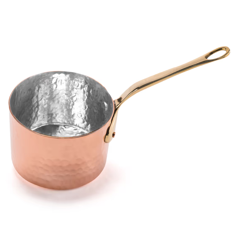 Olla de Cobre Hecha a Mano con Elegante Asa de Latón, Diseño Moderno de Alta Gama, Duradera, Apta para Lavavajillas y Horno, Juego de Utensilios de Cocina de Acero Inoxidable