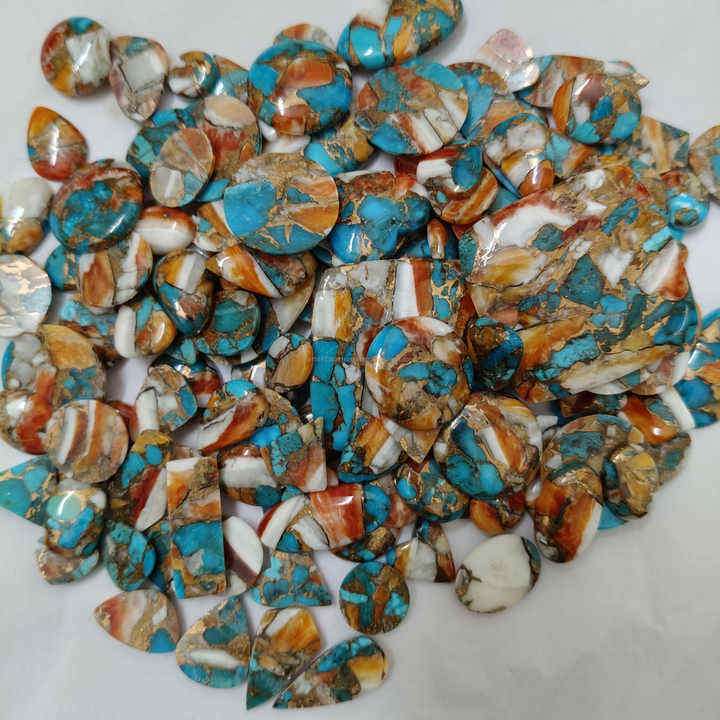 Colgante de Cabujón de Turquesa y Cobre Hecho a Mano, Atractiva Piedra Preciosa de Ostra Espinosa, Pulida Naturalmente, Formas y Tamaños Mixtos, Tamaño Personalizado