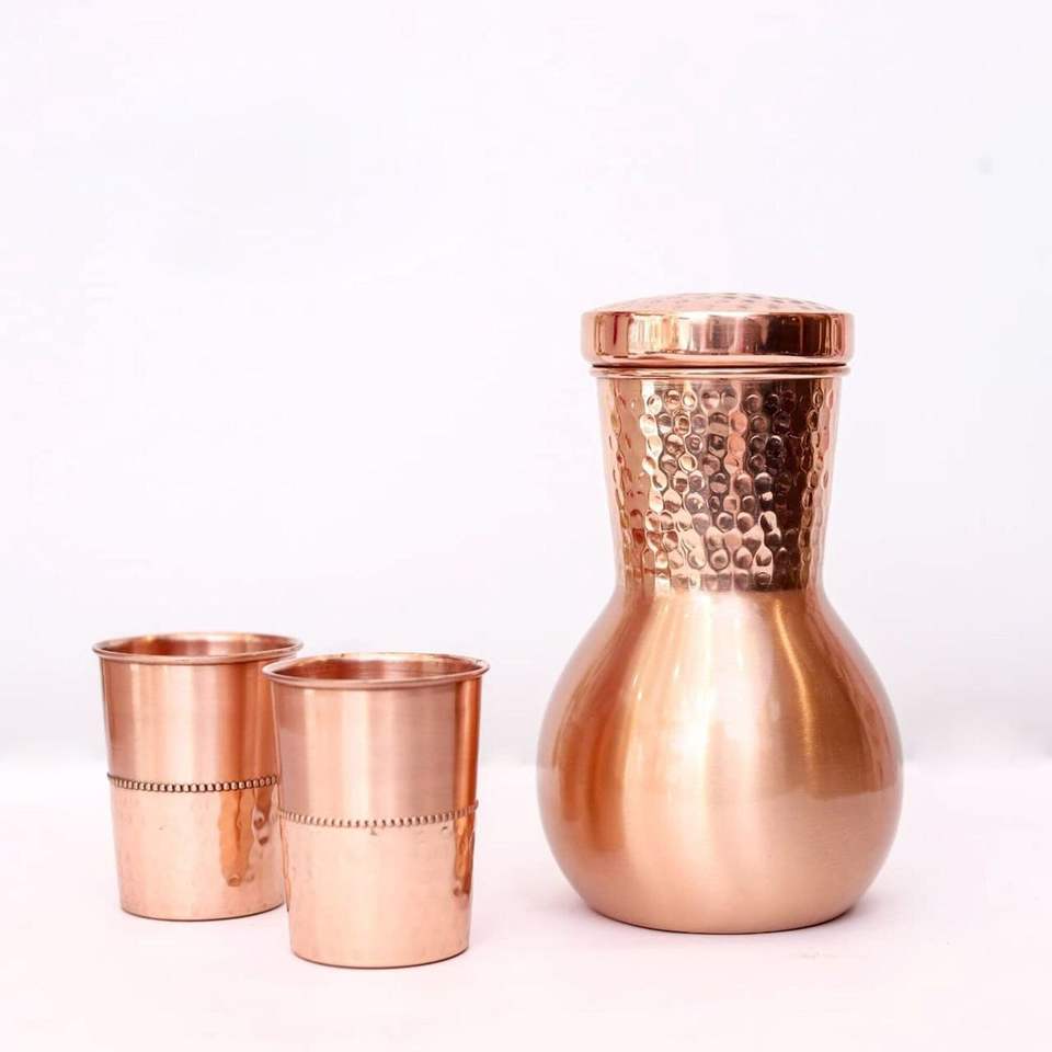 Jarra de Cobre Hecha a Mano para Agua y Bebidas con Asa de Latón, Jarra Premium para Servir en Restaurantes, Hoteles y Catering, Vajilla al por Mayor