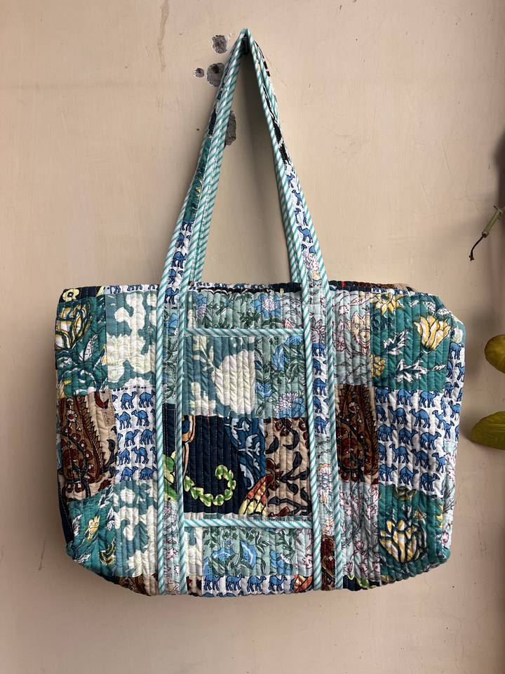 Bolsa de lona de algodón hecha a mano, diseño acolchado de retazos, estampado de bloques, personalizado, verano, invierno, viajes, mercado, compras, regalo, Playa