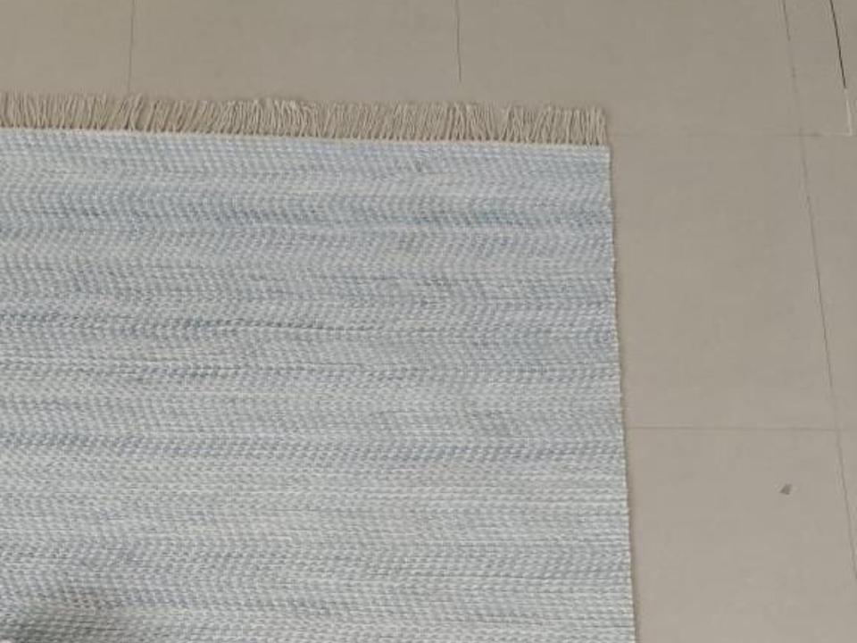 Alfombra Durrie de Algodón Hecha a Mano, Tejido Plano, Alfombra India Dhurrie, Rayas Azul Claro, Minimalista, Ecológica, Antideslizante para Sala de Estar