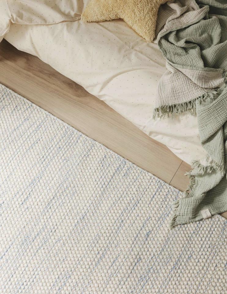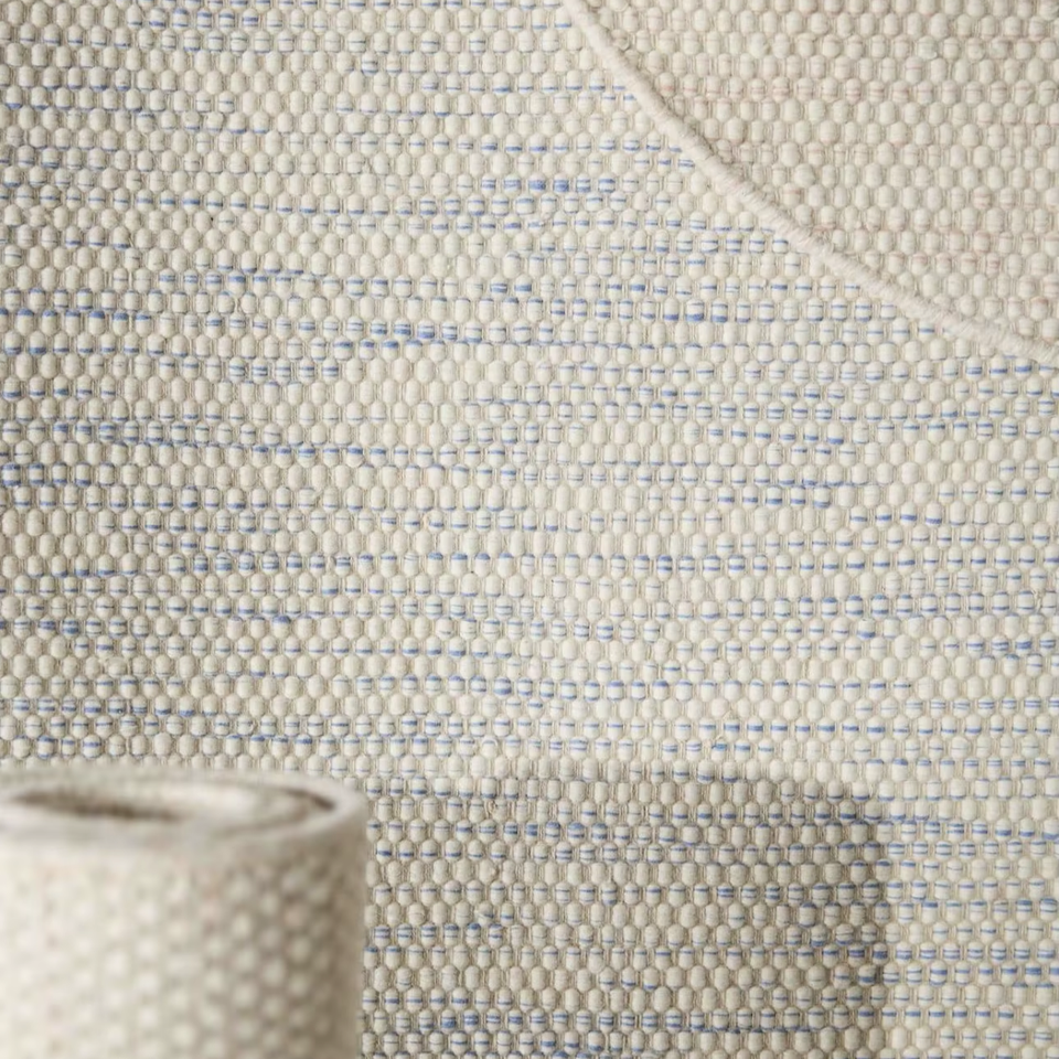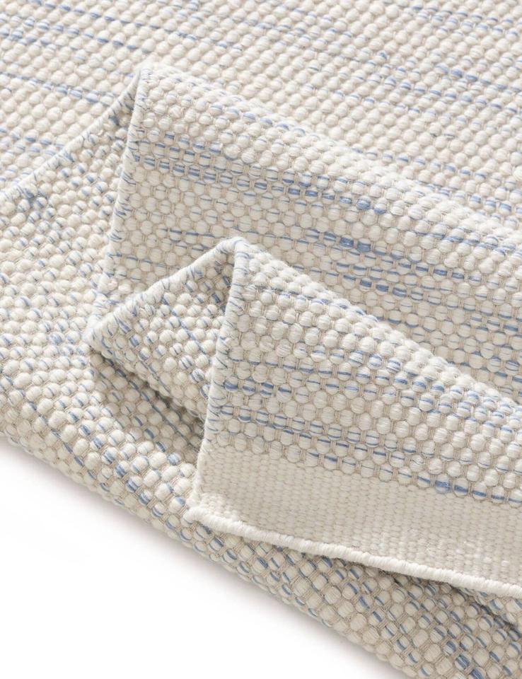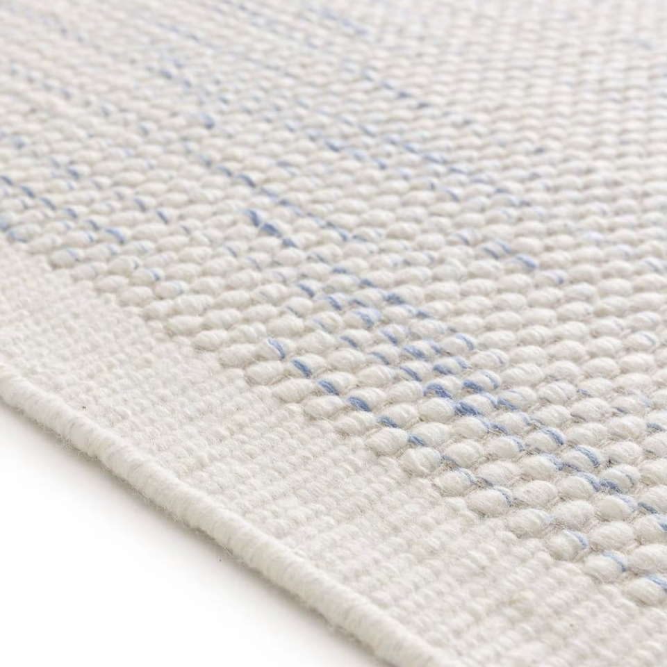 Alfombra Durrie Geométrica de Algodón Hecha a Mano, Tejido Plano Indio, Color Beige Natural y Azul, Moderna, para Sala de Estar o Dormitorio
