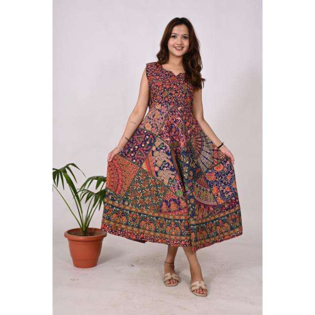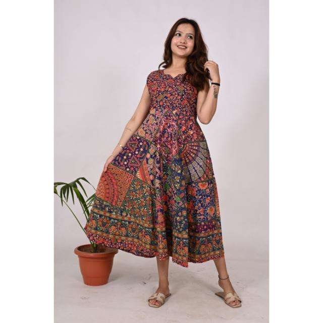 Palabras clave:Vestido de mujer de algodón con estampado de bloques