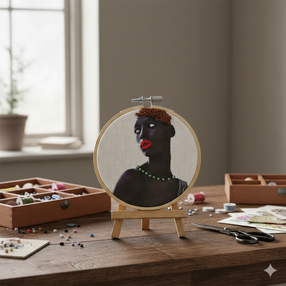 Aro de Bordado Moderno de Algodón Hecho a Mano para Colgar en la Pared - Edición de Belleza Audaz de Alto Contraste, Diseño Paparesta Redondo de 10 cm