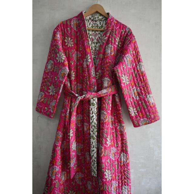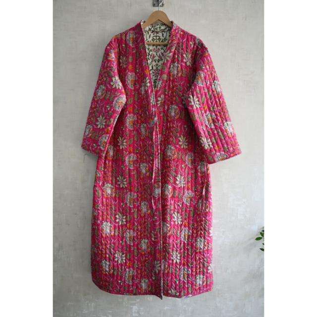 Chaqueta Acolchada de Algodón Hecha a Mano, Estilo Boho, Reversible, Abrigo Largo para Mujer, Bata Kantha, Ropa Étnica