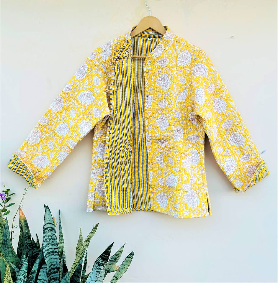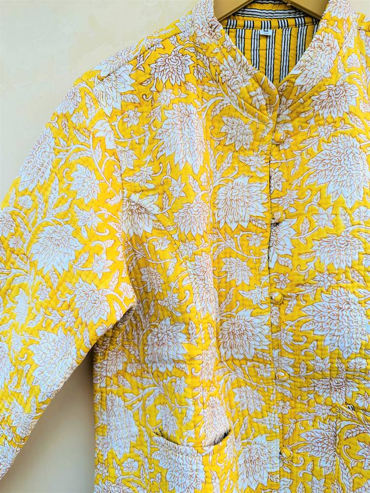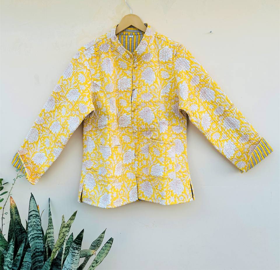 Chaqueta Reversible Acolchada de Algodón Hecha a Mano para Mujer, Ropa de Regalo de Alta Calidad con Estampado Floral y Manga Larga
