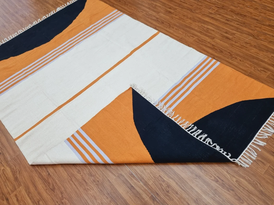 Alfombra de algodón hecha a mano, alfombra abstracta de tejido plano para sala de estar, dormitorio, comedor, habitación de niños