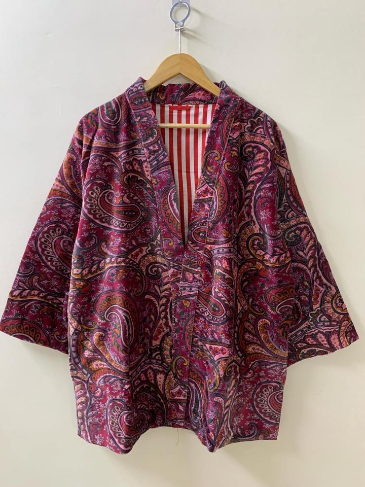 Bata Kimono de Terciopelo de Algodón Hecha a Mano con Estampado Floral, Regalo para Novia