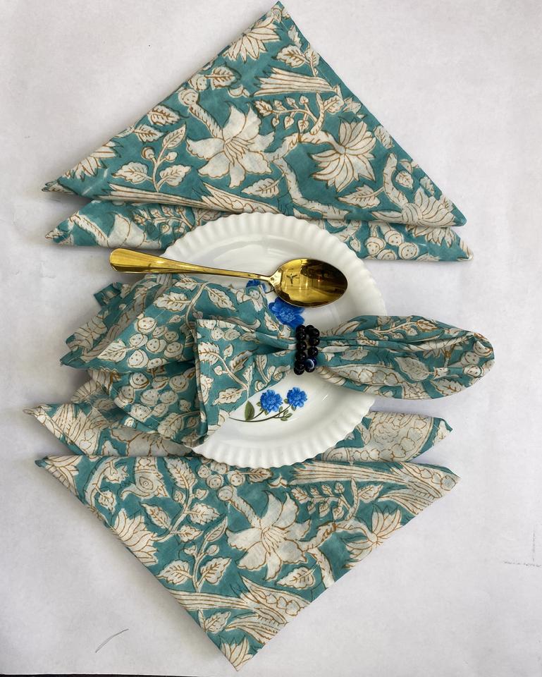 Servilleta Estampada a Mano con Bloques, 100% Algodón