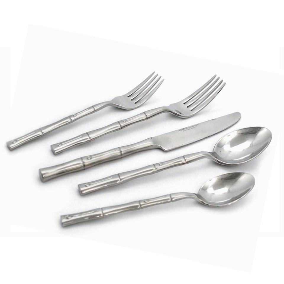 Juego de Cubiertos de Metal para boda artesanal hecho a mano, cuchara, tenedor, cuchillo, cubiertos pulidos brillantes, mango de diseño de bambú para uso de utensilios de cocina