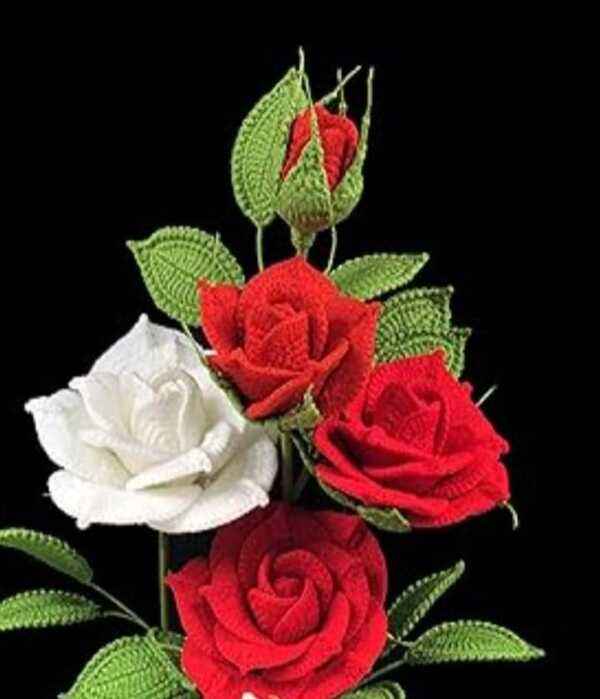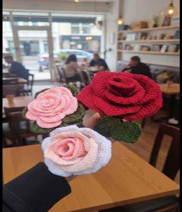 Ramo de Flores de Ganchillo Hecho a Mano, Rosas de Hilo Suave y Coloridas, Perfecto para Decoración del Hogar y la Oficina, Manualidades de Tela para Regalo