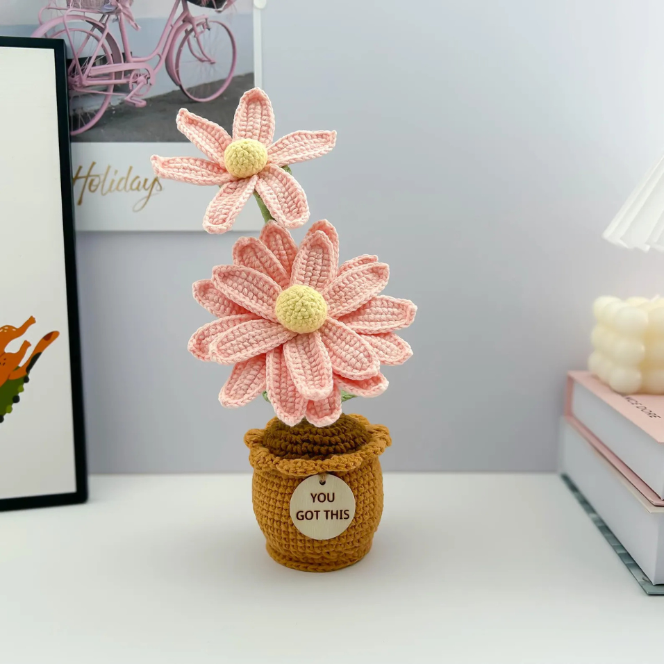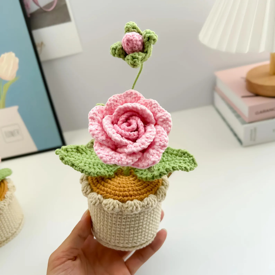 Flor de ganchillo hecha a mano, plantas en maceta, flores artificiales para siempre, regalo para un amigo, perfecto para decoraciones del hogar, OEM hecho en Vietnam
