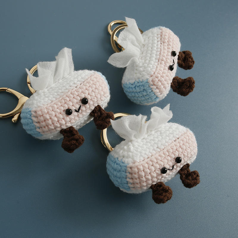 Nombre del producto:Crochet hecho a mano Mini caja de pañuelos llavero