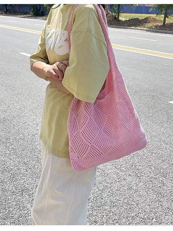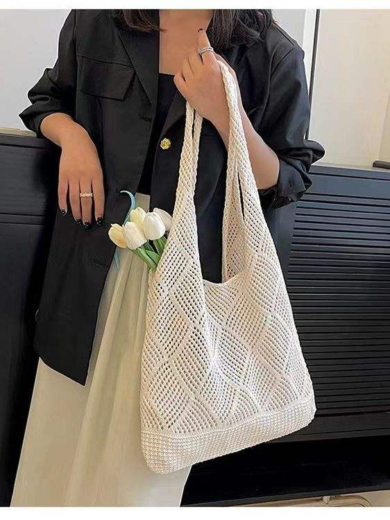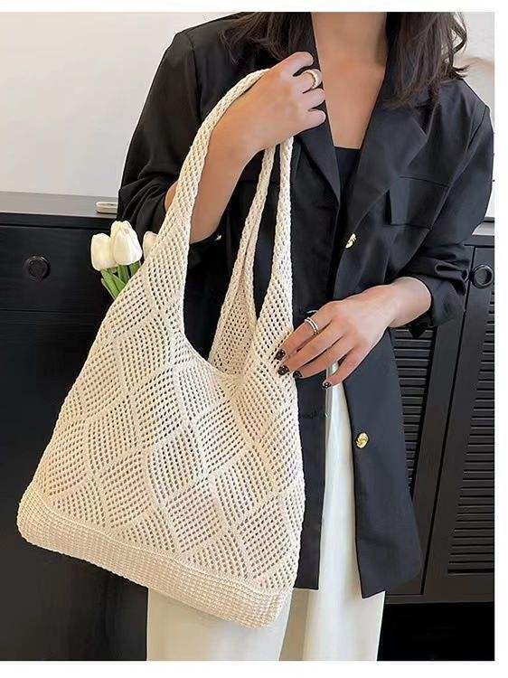 Bolsos de hombro de ganchillo hechos a mano para mujer, bolso de playa de punto Hippie estético Vintage, portátil con estilo para primavera Otoño Invierno