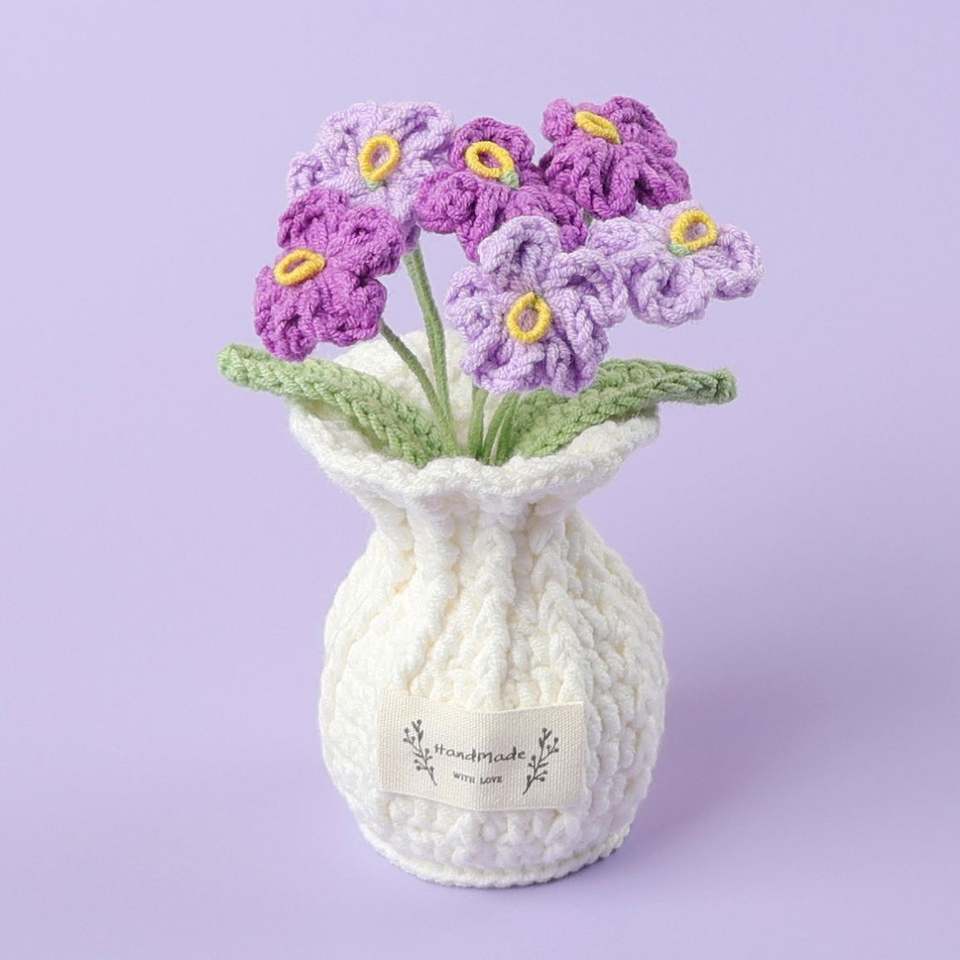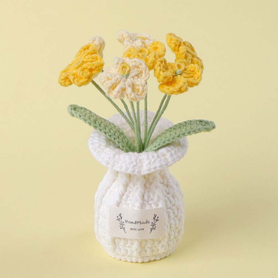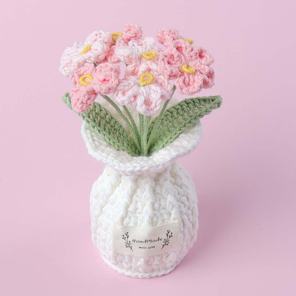 Maceta de Flores Tejida a Crochet, Decoración para el Hogar, Ramo de Flores Tejidas para Navidad