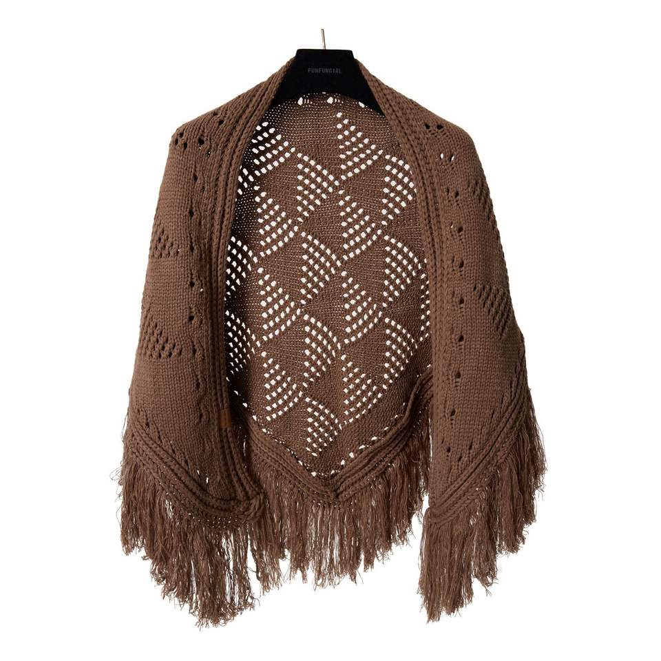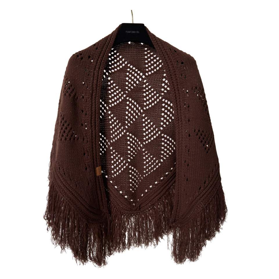 Chal Triangular de Ganchillo Hecho a Mano con Flecos, Diseño Calado Estilo Vintage, Bufanda Versátil, Moderna y Cálida