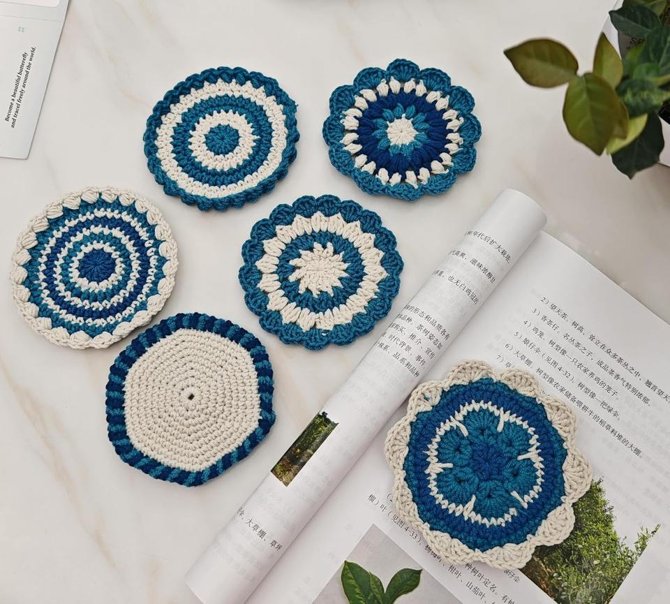 Posavasos de Madera Hechos a Mano con Ganchillo, No Tóxicos, para Proteger el Escritorio, Decoración del Hogar, Regalos para Fiestas, Bodas, Inauguración de Casa, Platos