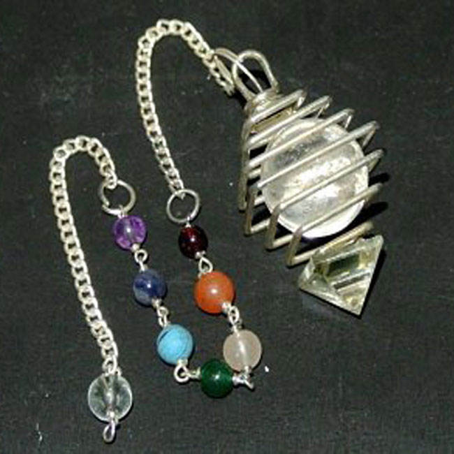 Péndulo de bola de cristal hecho a mano con jaula de metal, piedra preciosa curativa de Chakra para técnicas de Reiki