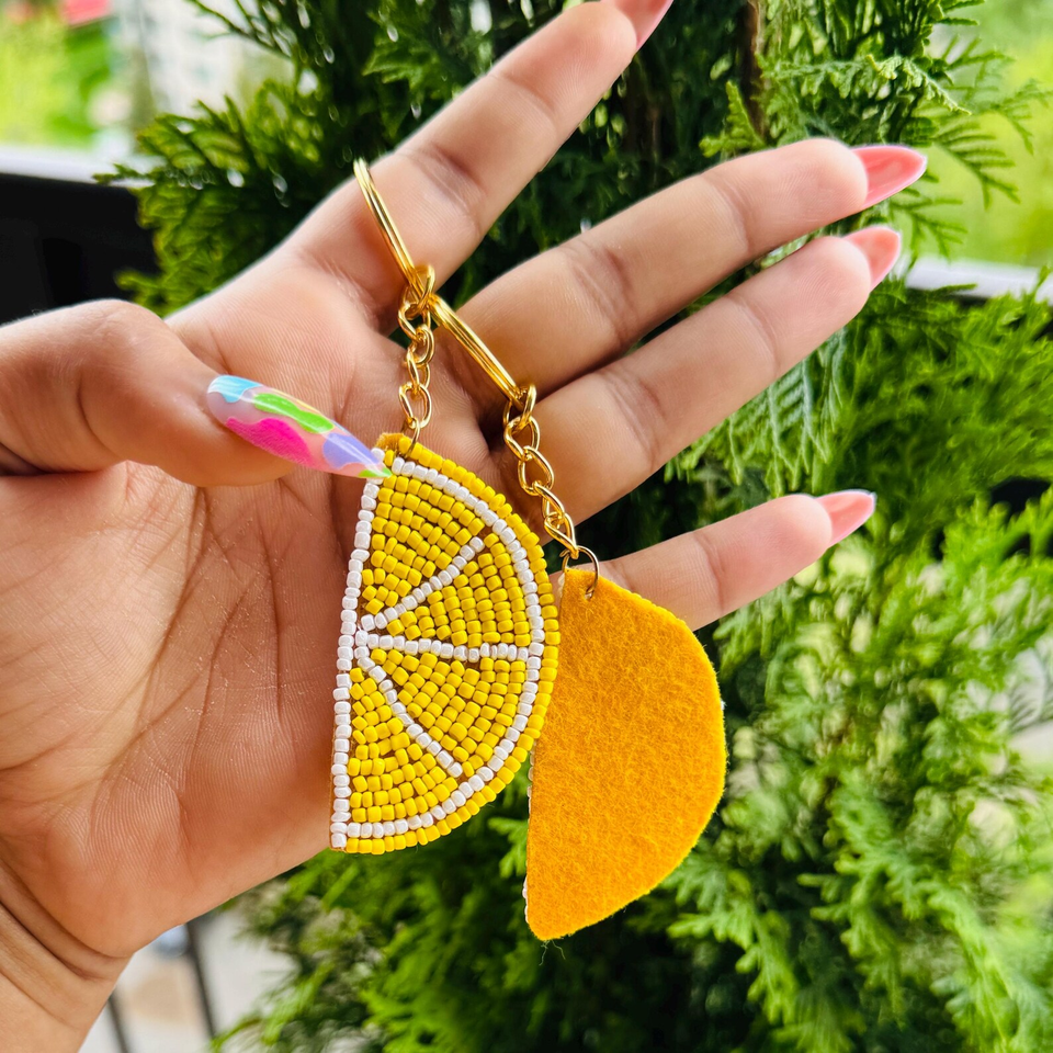 Llavero de Limón con Cuentas de Cristal Hecho a Mano con Borla de Gamuza - Adorno para Bolso de Verano, Impermeable y Duradero
