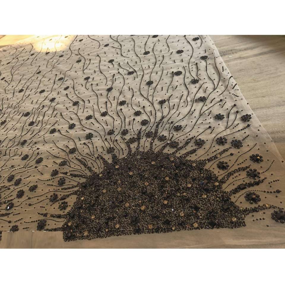 Tela de Malla Bordada con Cuentas de Cristal y Pedrería, Color Azul Esmeralda, para Vestidos de Noche y Prendas de Diseñador