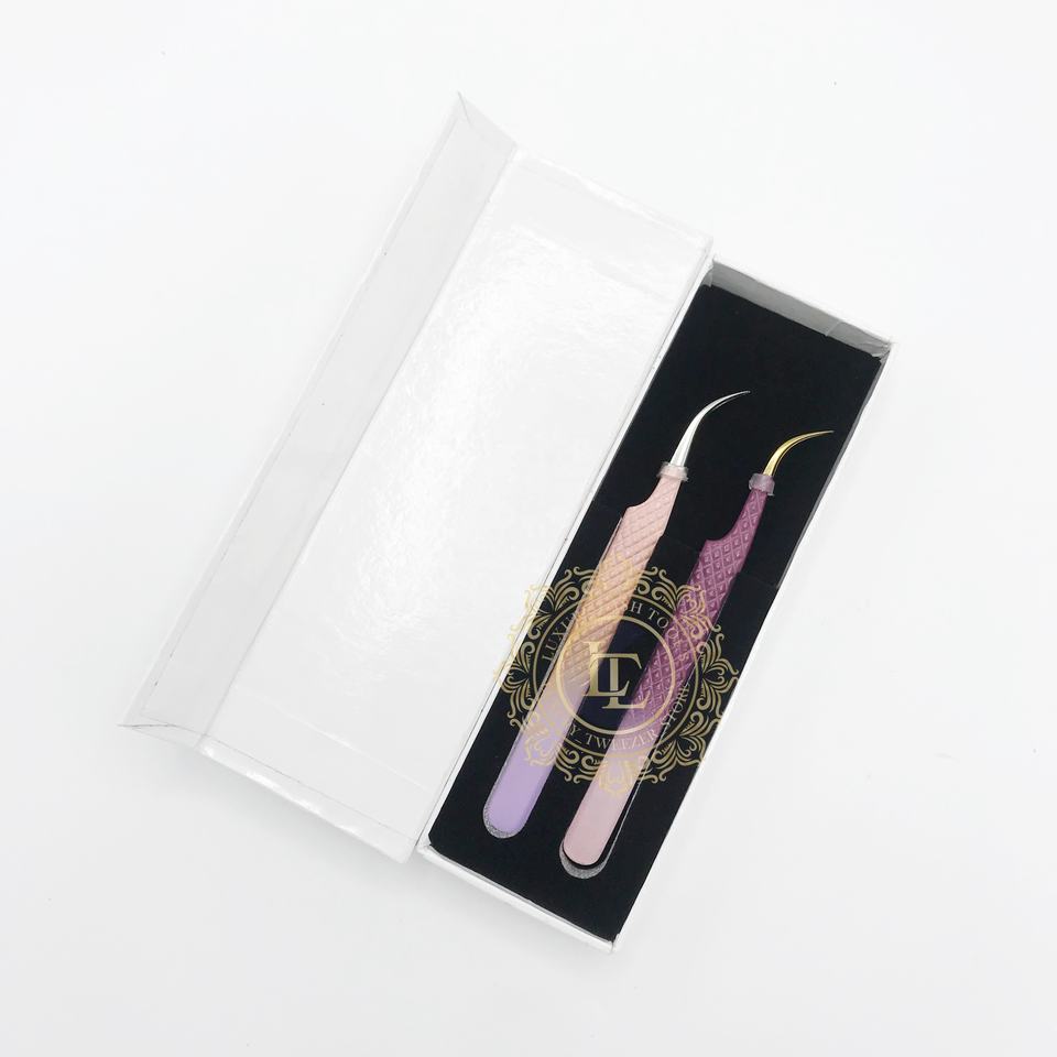 Pinzas de acero inoxidable con patrón de diamante curvo hecho a mano, pinzas de Punta dorada personalizadas, recubrimiento en polvo de alta calidad, Etiqueta Privada