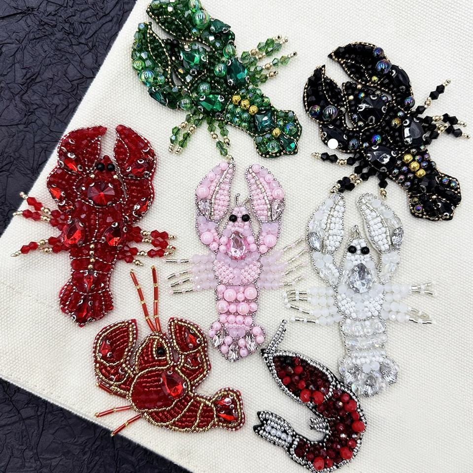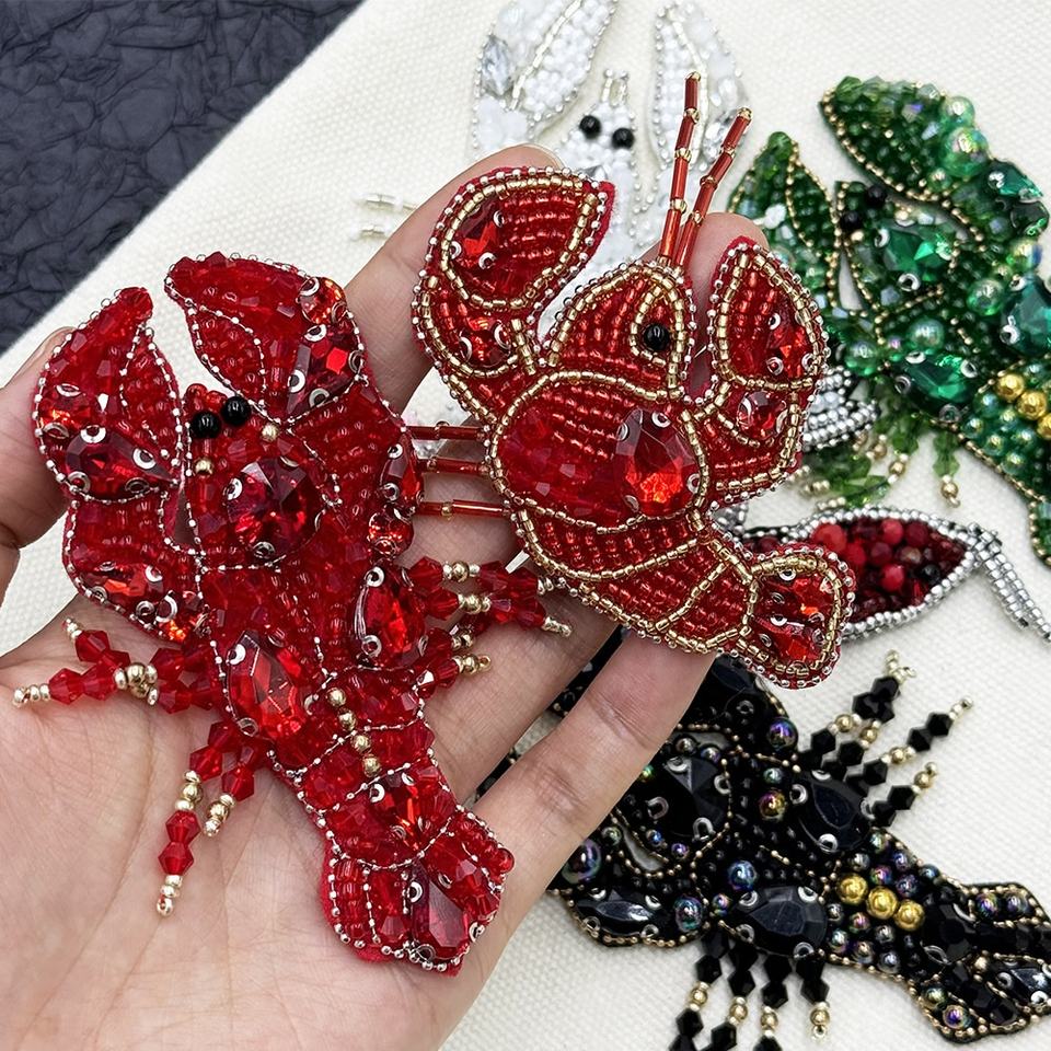 Parches de cuentas de diamantes de imitación con forma de langosta 3D personalizados hechos a mano, forma de corazón fácil de planchar para sombreros, cosidos para tela de PVC y fieltro