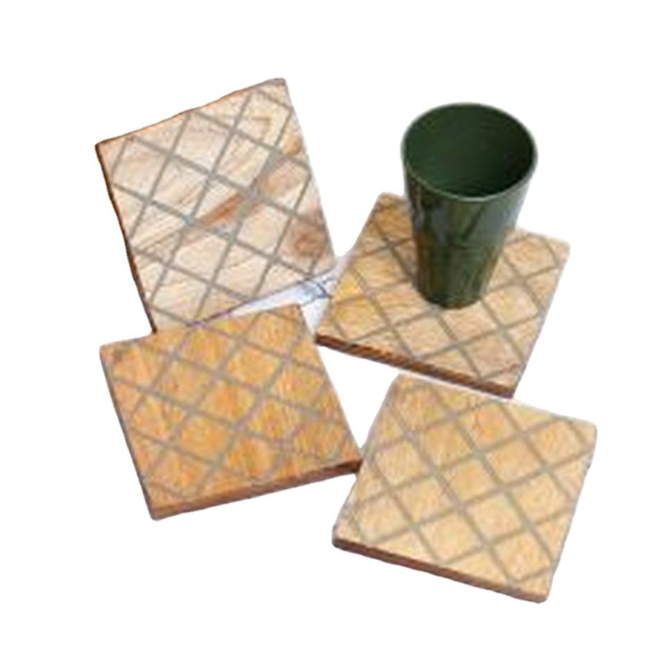 Posavasos de resina de madera de búfalo personalizados hechos a mano estilo clásico con soporte y posavasos decorativos grabados a mano para café y beber