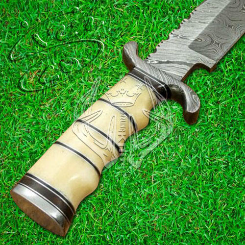 Cuchillo Bowie de acero Damasco personalizado hecho a mano con Funda de cuero con agarre de hueso ergonómico regalo de caza profesional con soporte OEM