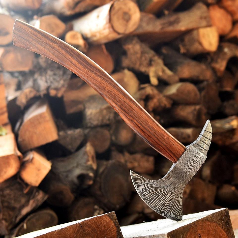 Tomahawk de Acero de Damasco Hecho a Mano, Personalizado, con Mango de Madera, Acero con Alto Contenido de Carbono, Diseño de Grado Industrial, Garantía de 3 Años para Bricolaje