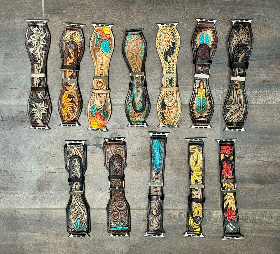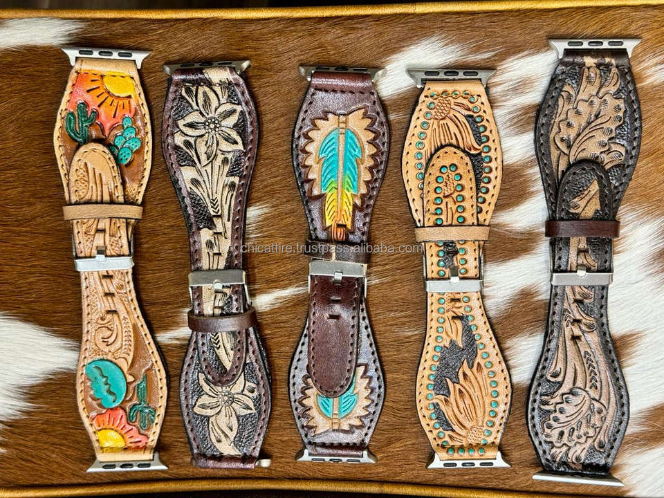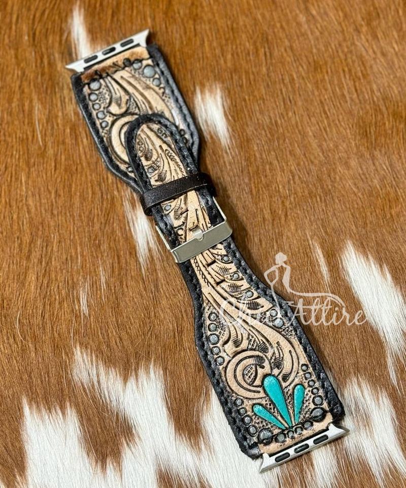 Nombre del producto:Tooled cuero turquesa Flare reloj mano banda