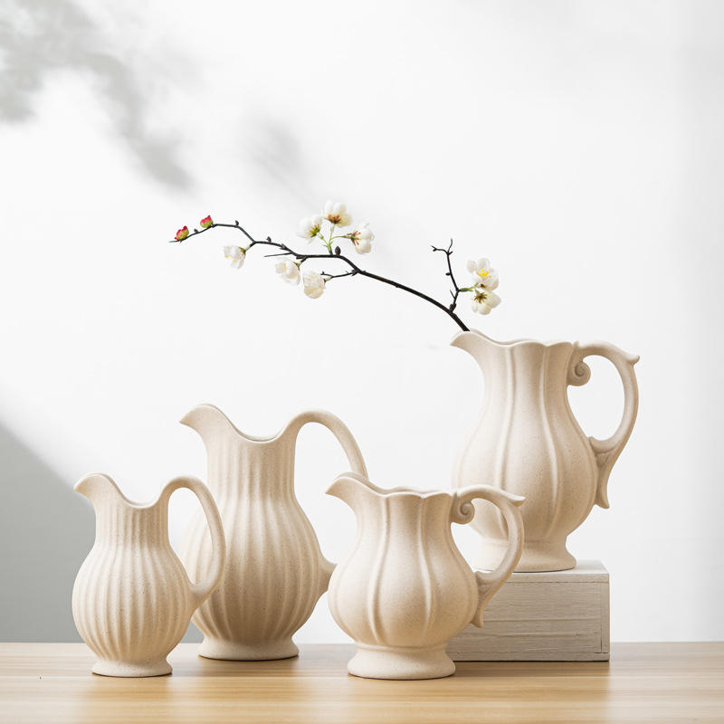 Jarrones hidropónicos hechos a mano, jarrón con mango de decoración suave, jarrón decorativo blanco, jarrón de cerámica