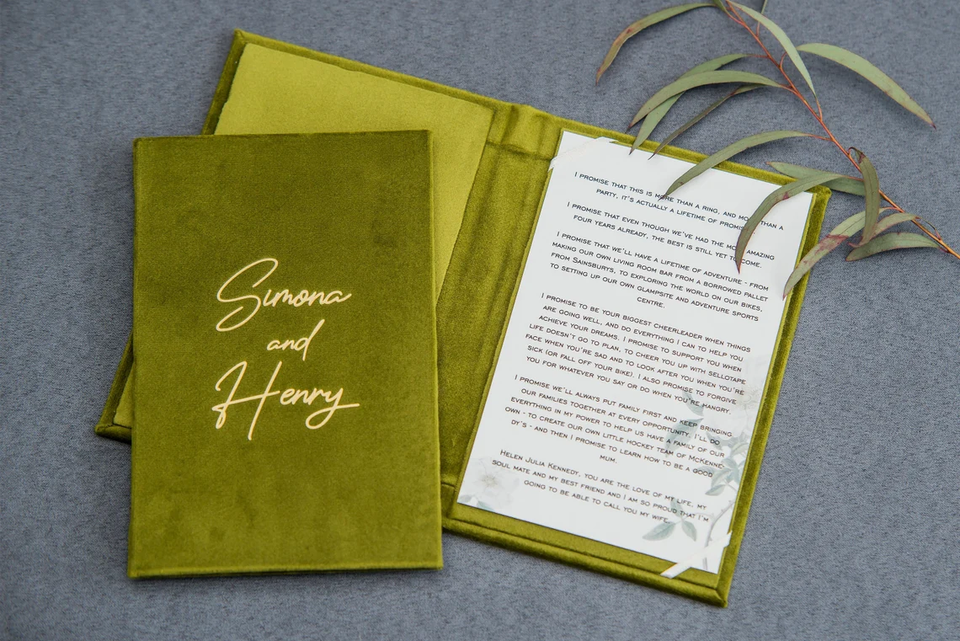 Libro de Votos Personalizado Hecho a Mano con Grabado en Relieve y Tipografía, Cubierta de Terciopelo, Carpeta de Tapa Dura, Porta Menús de Invitación de Boda