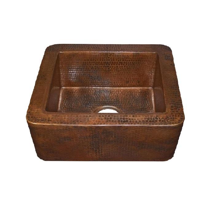 Fregadero de barra de cobre de 20 "cuadrado personalizado hecho a mano, fregadero de cobre de cocina de doble pared hecho a mano, proveedor de fabricante personalizado mate