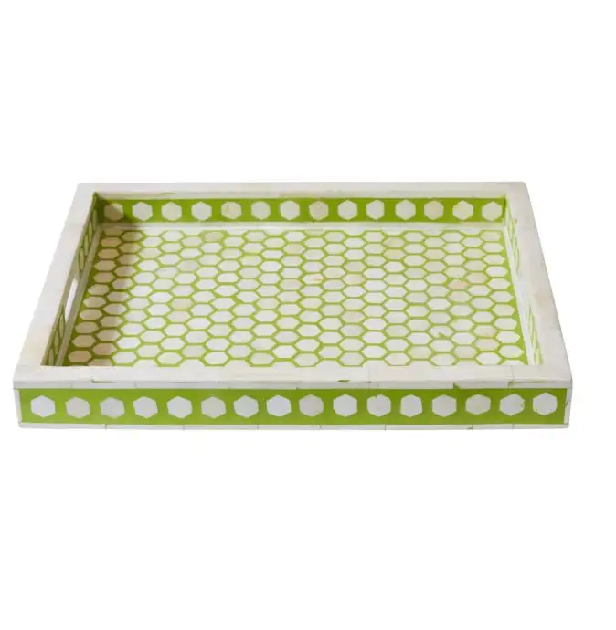 Bandeja de servicio de incrustaciones de hueso personalizada hecha a mano para decoración de muebles de boda o restaurante y el mejor producto de diseño