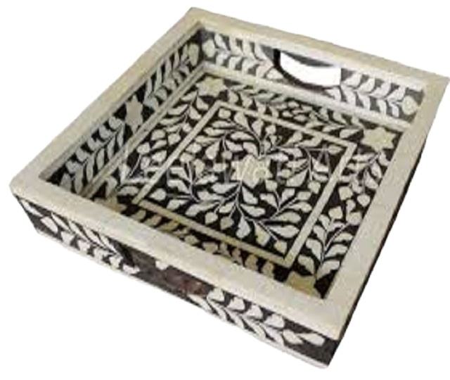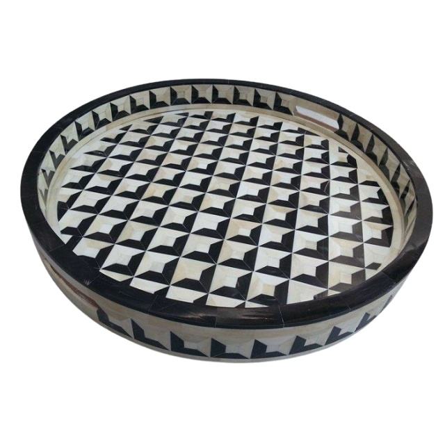 Bandeja de servicio con incrustaciones de fregona y hueso personalizada hecha a mano para el hogar, boda o decoración de muebles de restaurante