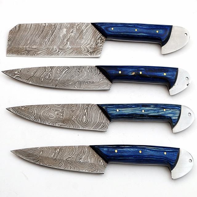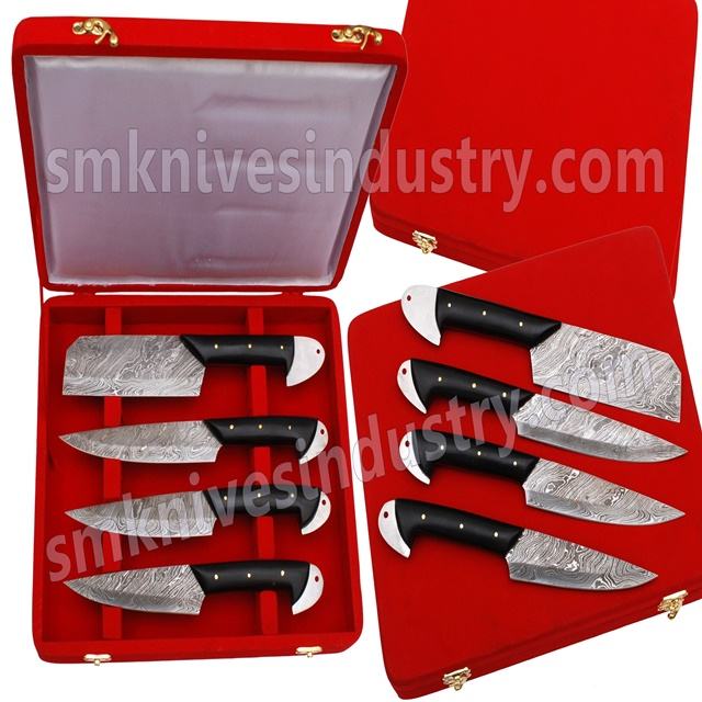 El juego de cuchillos de chef de 4 piezas de acero de Damasco hecho a mano incluye cuchillas de acero al carbono de 12 "y 9", caja de regalo de madera para uso en la cocina (SMK1120)