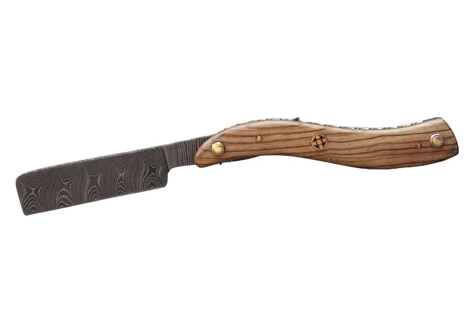 Maquinilla de afeitar de acero de Damasco hecha a mano-Cuchillas afiladas con mango de madera para minoristas