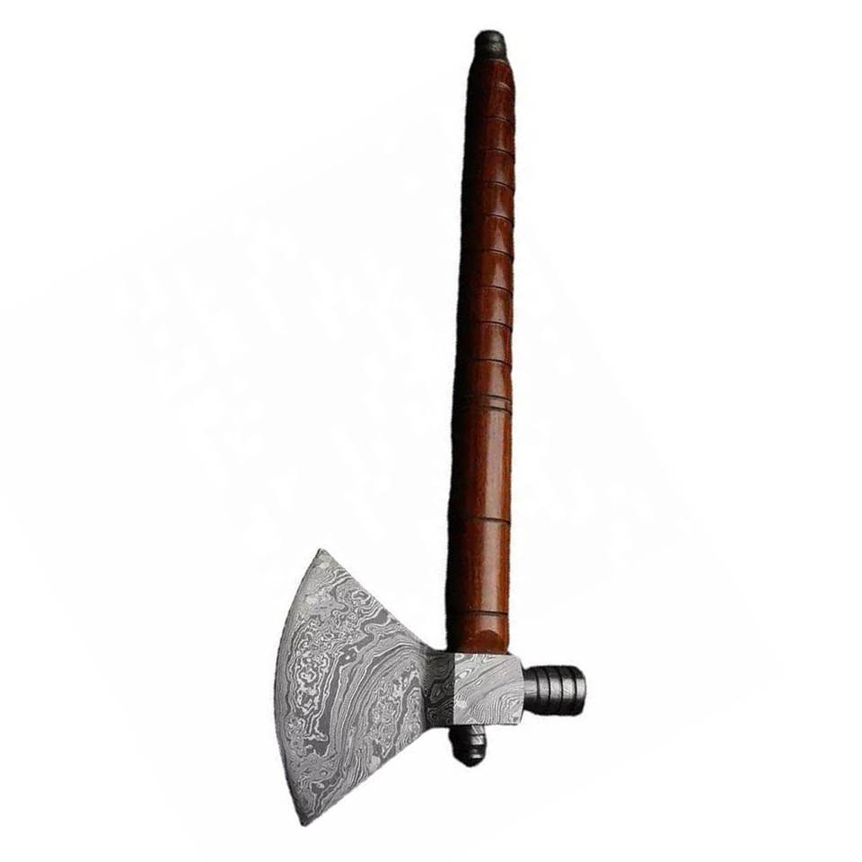 Hacha Tomahawk de Acero de Damasco Hecha a Mano, Hoja de Alta Calidad, Mango de Madera, Grado Industrial, Filo de Corte de 4 3/4 para Campamento al Aire Libre