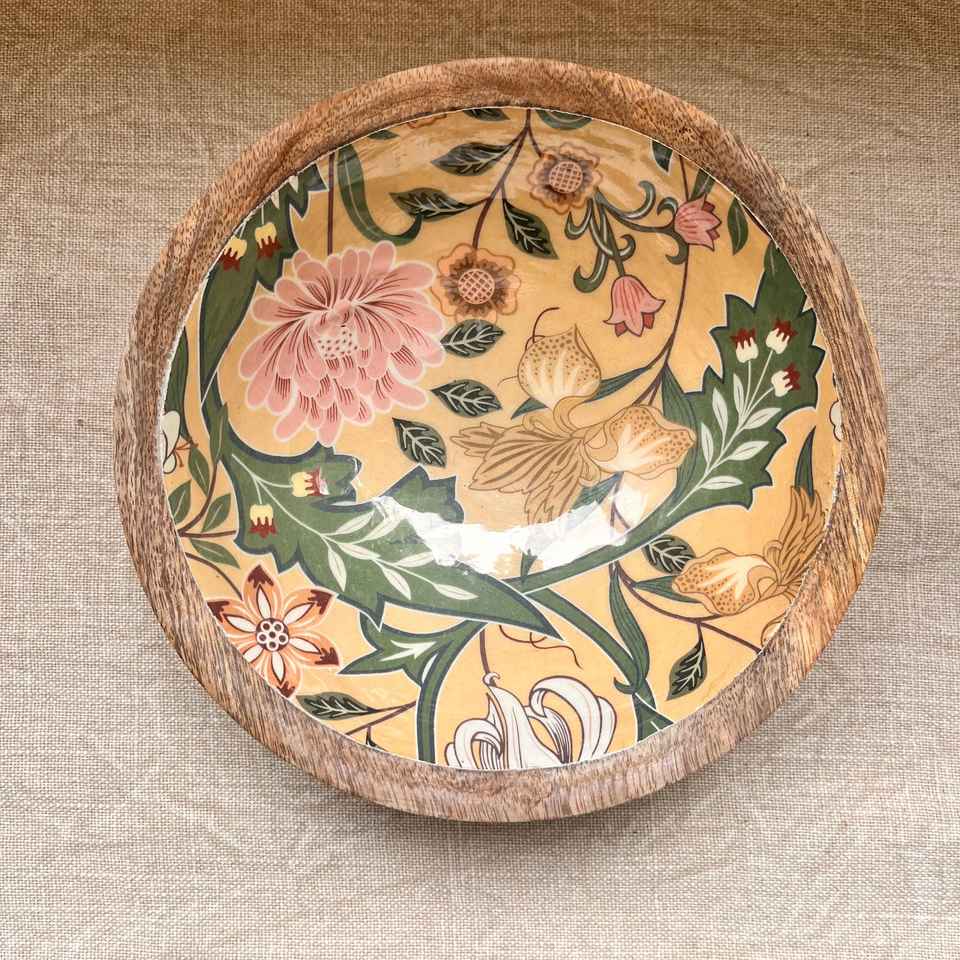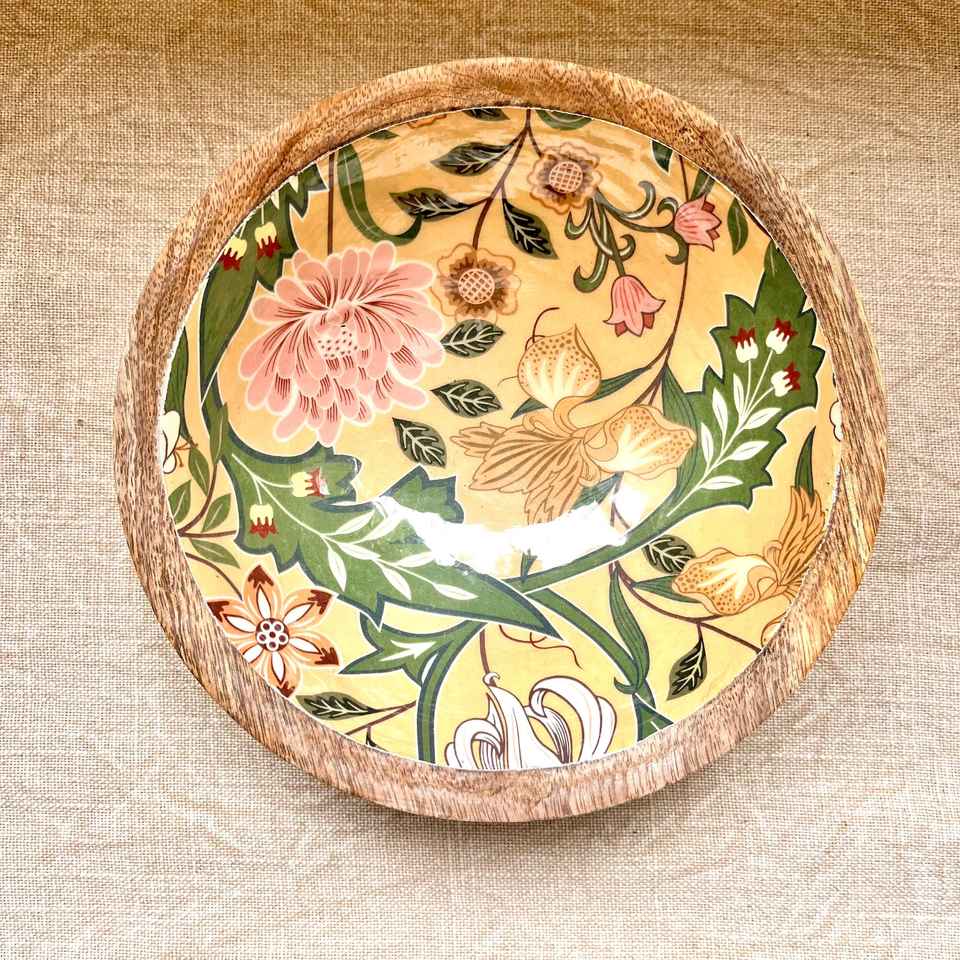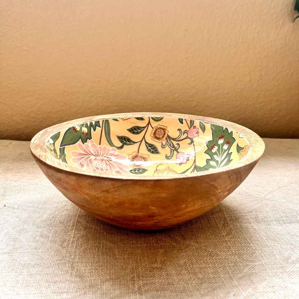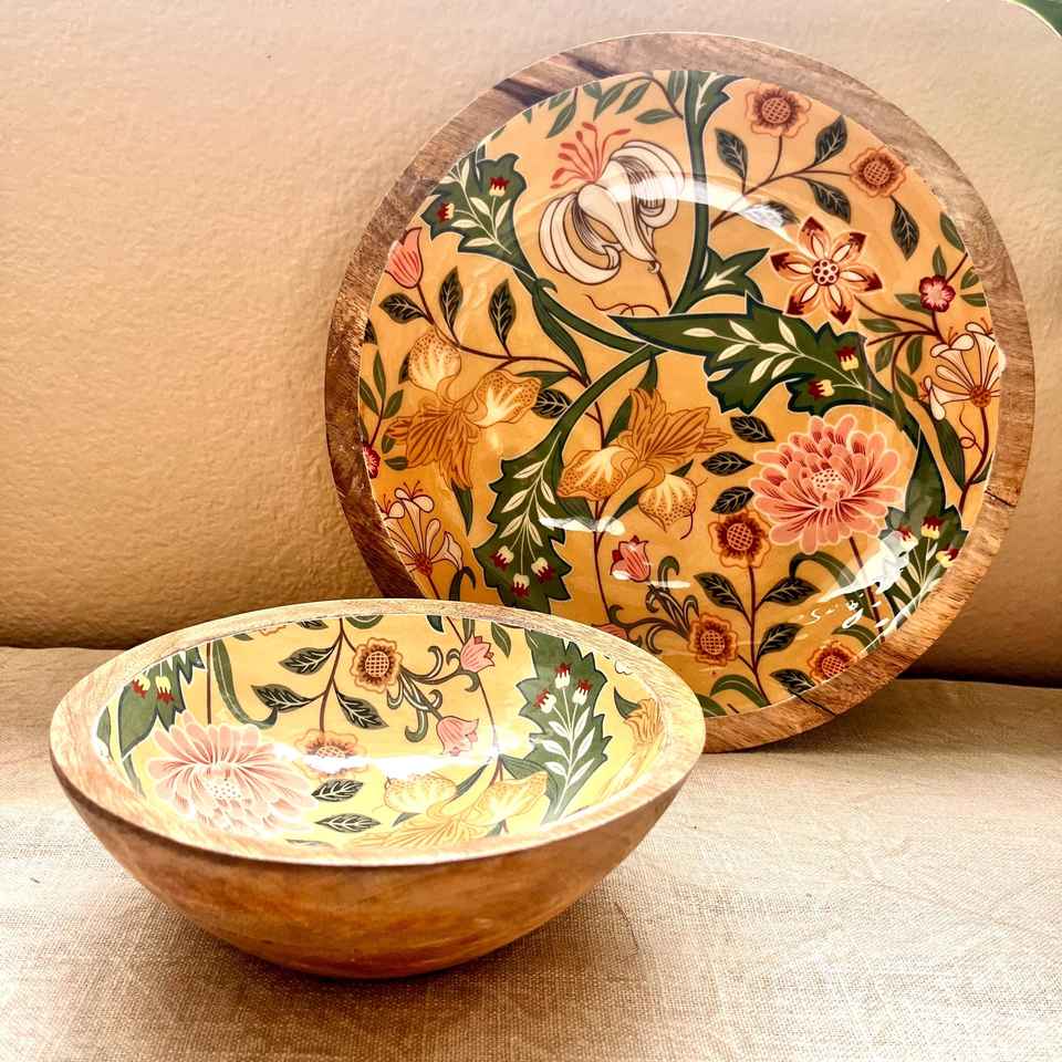 Juego de 2 Tazones para Ensalada de Madera de Mango Ecológica Premium con Diseño de Impresión Esmaltada para Hoteles, Restaurantes, Fiestas y Decoración de Cocina