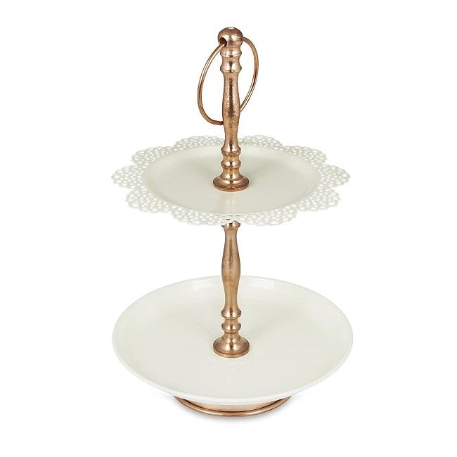 Soporte para Pastel de Metal de 2 Niveles con Acabado en Polvo Blanco, Soporte para Pastel de Metal Hecho a Mano para Fiestas de Cumpleaños o Año Nuevo