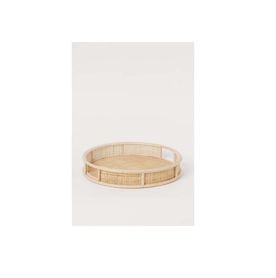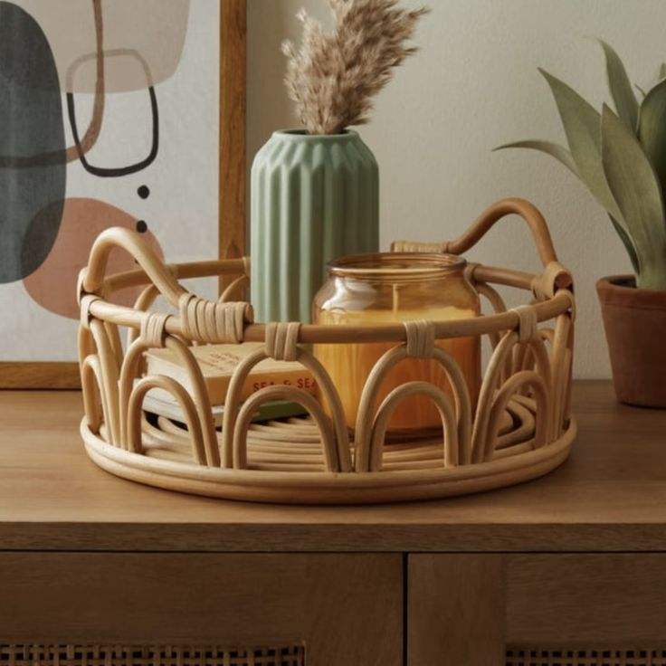 Bandeja de servicio de yute de ratán decorativa hecha a mano con acabado de incrustaciones de hueso Juego de 3 bandejas de servidor de alimentos de forma redondeada