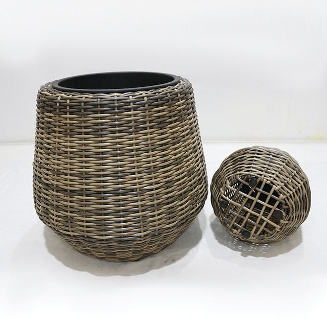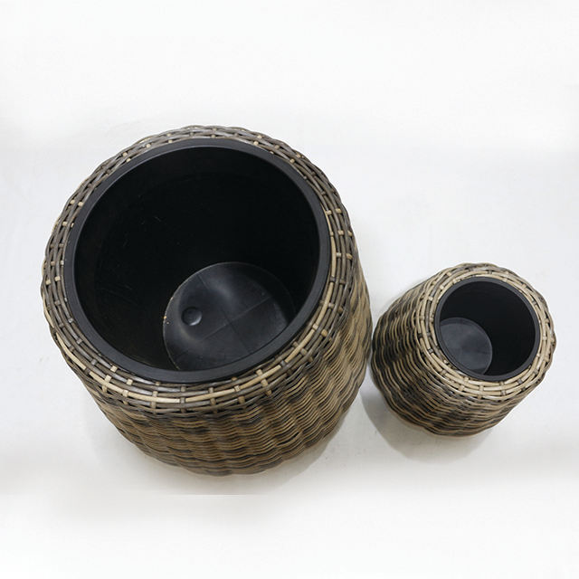 Macetas de plástico decorativas hechas a mano con aspecto de ratán, macetas ecológicas para balcón, patio y decoración de jardín