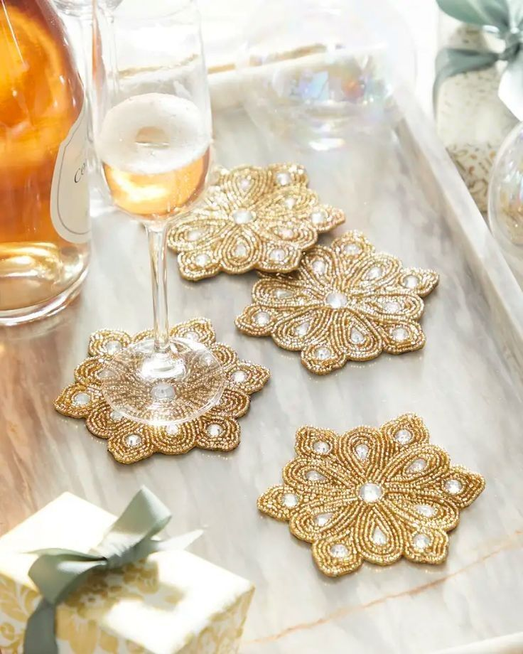 Juego de Posavasos Decorativos Hechos a Mano con Cuentas de Semillas, Diseños Únicos para Té, Café y Vino, Posavasos de Cuentas Hechos a Mano