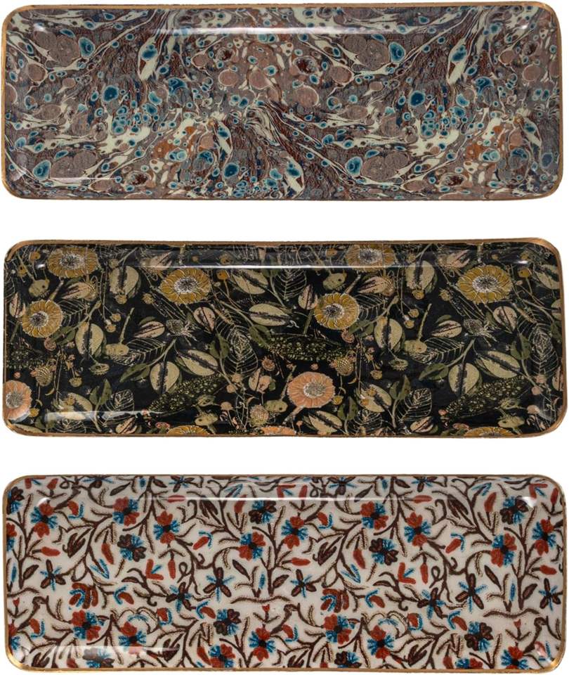Bandejas de metal lacadas abstractas creativas florales personalizadas sólidas de lujo hechas a mano juego de borde dorado 3 lavavajillas ecológico duradero