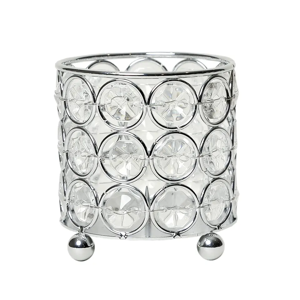 Soporte de Metal plateado con cuentas de cristal de diseño hecho a mano, soporte votivo para velas, soporte de acabado brillante para decoración del hogar, Metal